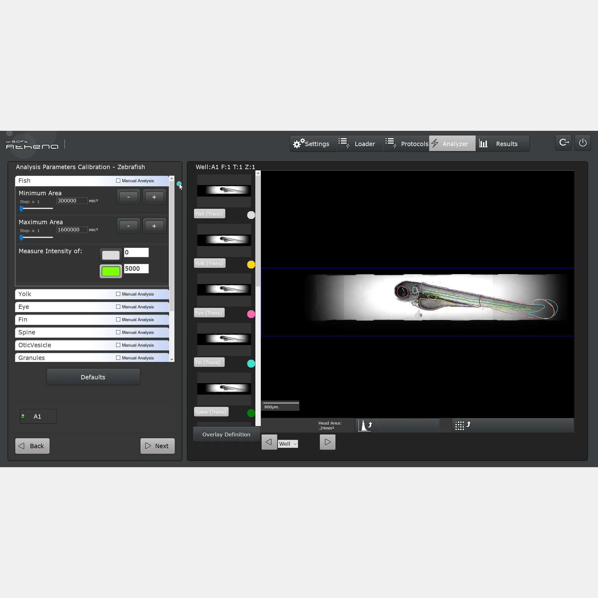 该软件允许使用简单的明场图像对斑马鱼进行无参数分析。它能够自动识别至多5天大的斑马鱼胚胎和幼鱼(dpf),并提取出鱼的轮廓及其大部分内部结构:卵黄囊、眼睛、原肠胚等,以及头部、躯干和尾部的各部位。