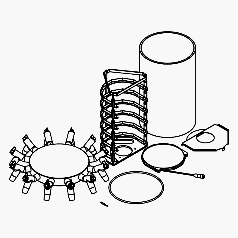 带歧管顶盖、12 个接头、6 个可加热货架(不超过 60°C)和 6 个样品温度传感器的丙烯酸玻璃干燥室,适用于 BUCHI 冷冻干燥机专业款。
