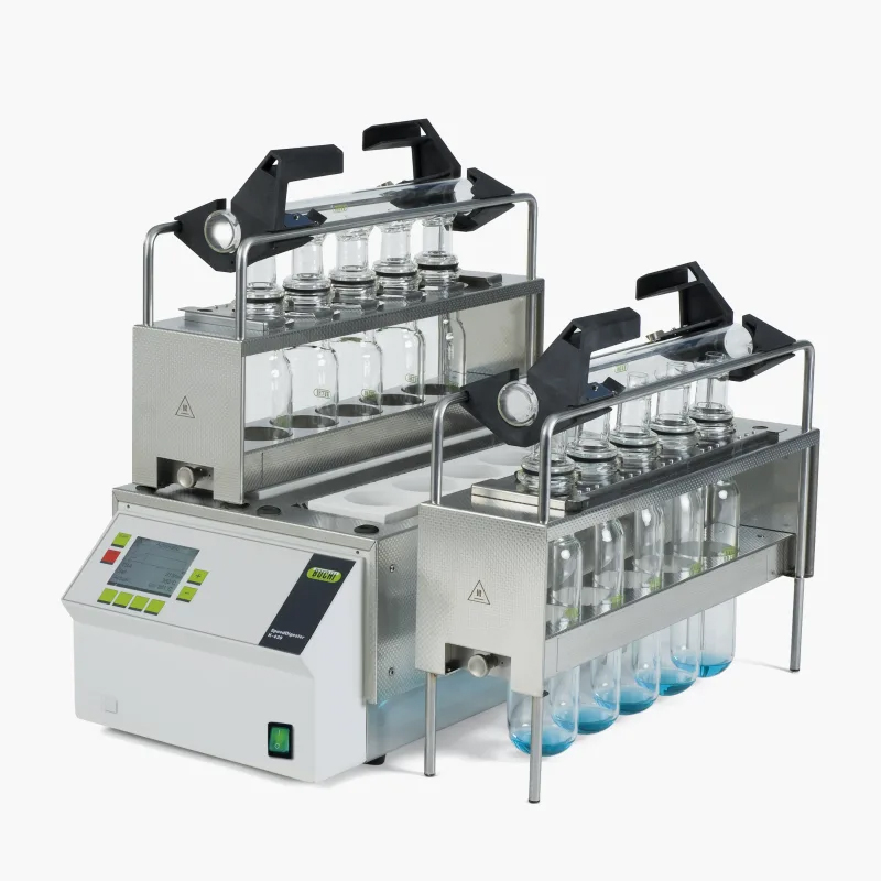 快速红外消解仪 K-425 / K-436 一体二用,结合凯氏消解和回流消解。可灵活使用所有 BUCHI 样品管 (100 mL, 300 mL, 500 mL),样品管符合 COD 和其他回流消解(例如:王水)的 ISO 6060 标准。可选特定的抽吸模块进行水性样品消解。