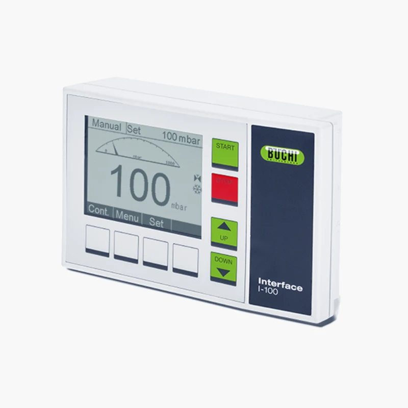 BUCHI 界面 I-100 的便利性受到实验室用户的高度赞赏。I-100 不解自明的用户界面带来直观和用户友好的操作体验,真空调节简单精确,关联信息一览无余。