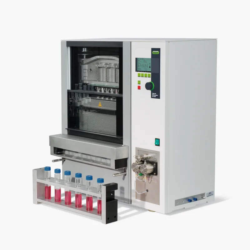 SpeedExtractor (快速溶剂萃取仪)是快速加压溶剂萃取(PSE)的*佳解决方案。它可同时处理多达6份样品,大大提高生产效率。方便的样品装载和即时可用的萃取收集,样品准备工作流程实现流 线化。