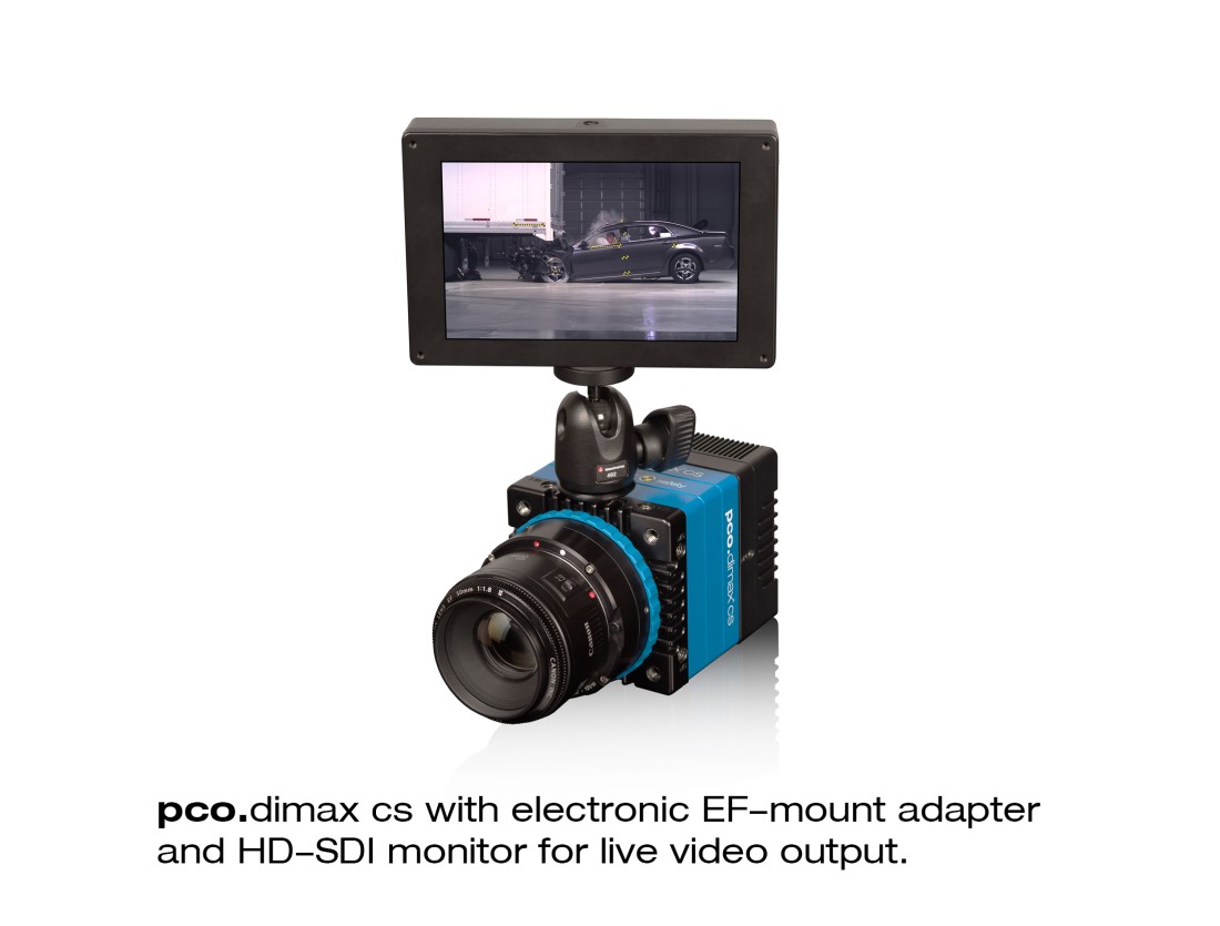 为了利于现场数据检查,此相机包含一个HD-SDI 视频输出端和自动镜头控制。在加之以可靠的多相机同步功能,pco.dimax cs相机必能为您在各种汽车安全测试的挑战中提供清晰出众的彩色图像。