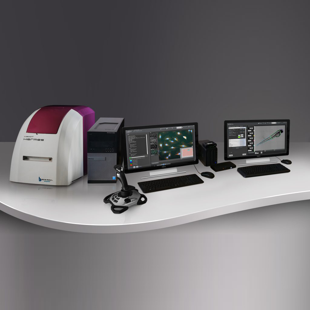 WiScan Hermes是IDEA Bio-Medical公司专为高内涵筛选(HCS)设计的自动化成像系统,它实现了自动化显微镜两种相互矛盾的主要功能一一图像质量和采集速度一的独特结合。