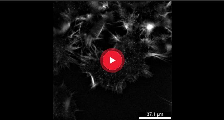 本视频中对表达 LifeAct-TagGFP2 的 U2OS细胞成像,每隔500毫秒拍摄一次,曝光时间150毫秒,总长5分钟。 样本由德国格雷弗尔芬的 ibidi GmbH 公司提供。